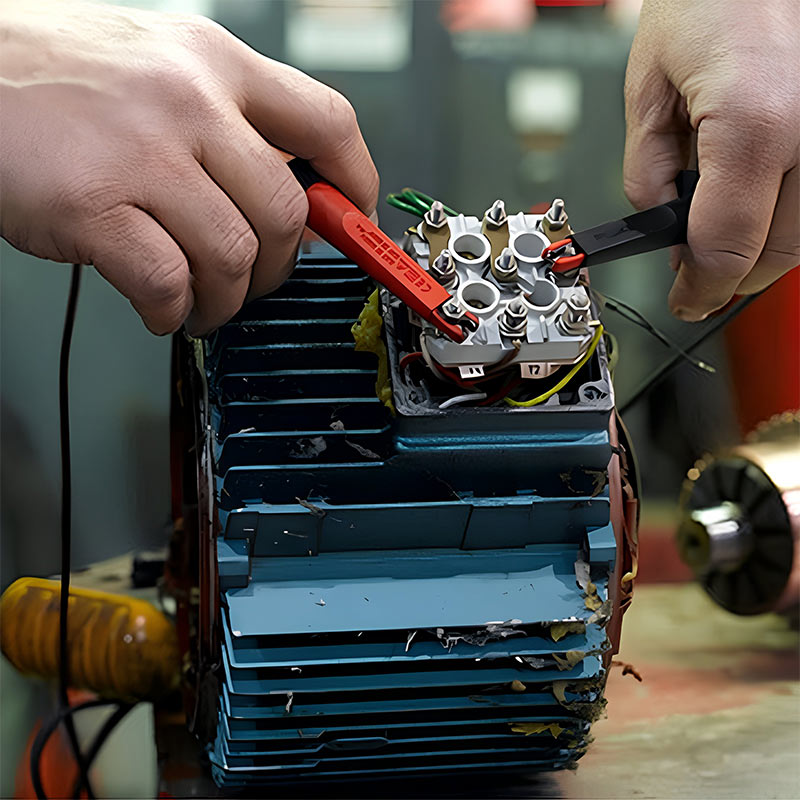 Revisión de aislamiento, cambio de salidas, rodamientos, bornera, conversión de voltaje, cambio condensadores, sellos, retenes, compensado, rectificado, encamisado de tapas, ejes, limpieza y pintura.